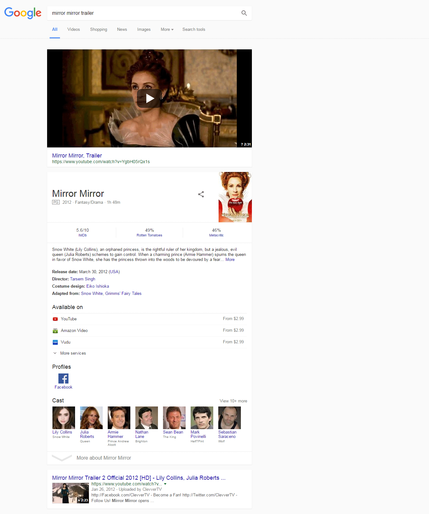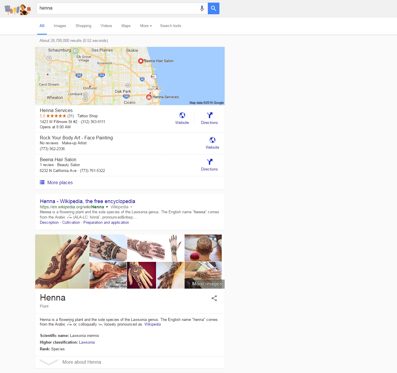 Here's an example with a Featured Video, followed by a Knowledge Panel, and then the first organic: