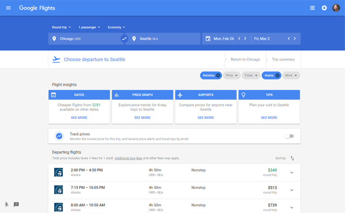 Click on one of these choices and you're taken to a completely redesigned Google Flights portal...