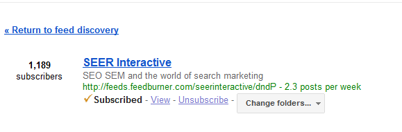First I looked at RSS subscribers, by going to Google Reader and searching for their blogs like this: