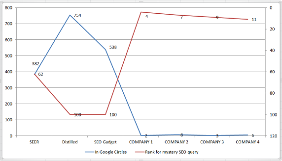 People don't think about "algorithmic weights" and "over optimization" they believe in what they can see, and what they SEE is that the company ranking #1 or #2 has the social proof that maybe SEER or Distilled does not when it comes to the rankings.
