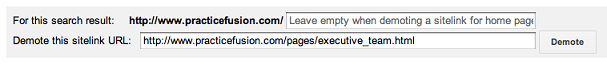 On February 7th I went into the “Sitelinks” section of Google Webmaster Tools and demoted the Executive Team page as a sitelink for our homepage URL. I was working a hunch.