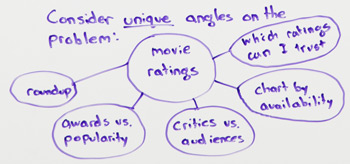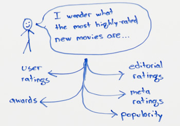 So as we brainstorm different ways that we might address the core of this user's problem, we might say, "All right, movie ratings, could we do a round-up?"