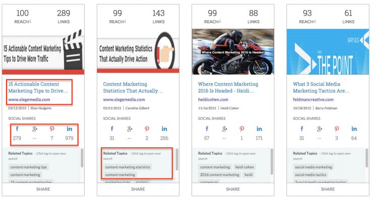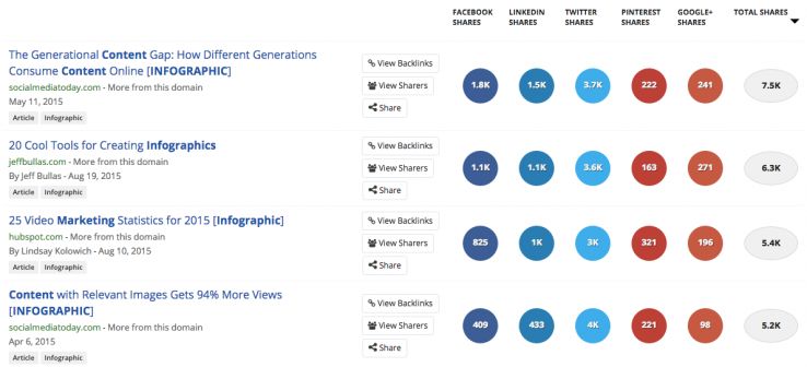For example, you can find the most shares for various types of content, which can help you better discern what types of content you should be creating and sharing more of.