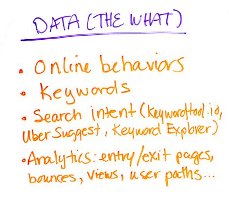 It's helpful to think of it like this. So the data is kind of telling us what happened. It can tell us about online behaviors, things like keywords, keyword volume, search intent. We can use tools, like KeywordTool.io or Ubersuggest or even Moz's Keyword Explorer, to start to understand that.