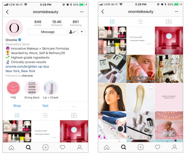 It’s for celebrities. It’s to show off your enviable trip. It’s for fashion blogs. Sneakerheads. Memes. Art. Beauty brands. It’s really great for beauty brands. Why? Instagram is obviously great for sharing pretty photos — and if you’re a beauty company, well, it’s a no-brainer that you should have an active account. And it also has incredible built-in features to organically promote your posts, engage customers, and sell products with actual links to those products on your photos.