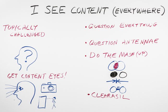 So the whole thing here is getting content eyes. Learning to see content everywhere. Train yourself. Begin to ask those questions. Begin to look at the stimulus that comes in around you. Listen, look, and find out what you can put together in a way that nobody else has before, and you'll never run out of those content ideas. Thanks a lot for joining me today.