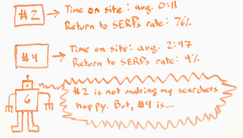 So this is essentially if searchers are clicking on a particular result, but they're immediately clicking the back button and going back to the search results and choosing a different result, that could tell the search engine, could tell Google that, "You know, maybe that result is not that great. Maybe searchers are deeply unhappy with that result for whatever reason."