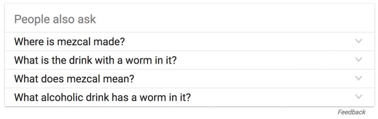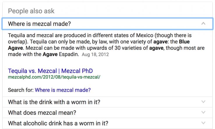 You’ve likely seen the People Also Ask (Related Questions) boxes in SERPs. These accordion-like question and answer boxes are Google’s way of saying, “Hey, you beautiful searcher, you! These questions also relate to your search... maybe you're interested in exploring these too? Kick off your shoes, stay a while!”