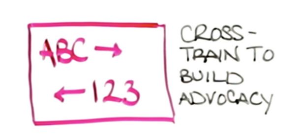 But it also creates these great mental checks where you ask yourself, "Am I including the right people at the right times? Is there anyone else who could add value here? Could my work be impacting someone else?" So the purpose here is not necessarily to know how to do each other's jobs so much as it is to empower people to be able to advocate for, speak about, and cross-sell your other teams.