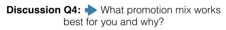 Companies will generally allocate different weights to each part of the promotion mix based on how they answer these types of questions. Here is an example from the Edward Lowe Foundation, a US non-profit organization that helps to encourage local entrepreneurship: