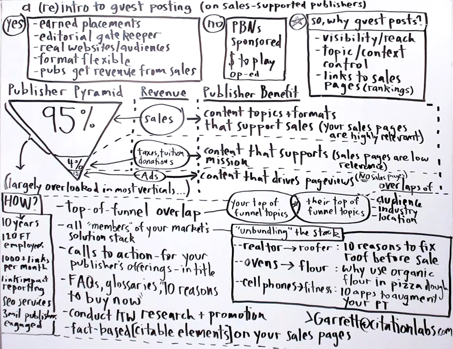 Probably lots of questions. But that's our approach to guest posting on sales-supported publishers. Give it a shot and let me know how it goes. Love to hear from you at garrett@citationlabs.com — happy to answer any questions.