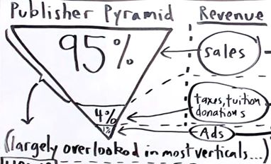 Now, why guest posts? Well, guys, there's an enormous amount of visibility and reach here. Look at the pyramid. Now, this is representative of most industries generally, where we've got 95% of the publishers are publishing to get sales, 4% that are mission based and are supported by taxes, tuition, donations, subscriptions, etc.