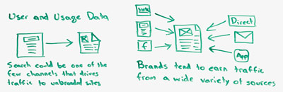 When you're unbranded, one of the few ways that you can get traffic is through unbranded search. Search is one of those few channels that does drive traffic, or historically anyway did drive traffic to a lot of non-branded, less branded sites. Brands tend to earn traffic from a wide variety of sources. If you can start earning traffic from lots of sources and have the retention and the experience to drive people back again and again, well, probably you're going to benefit from some of these potential algorithmic shifts and future looking directions that Google's got.