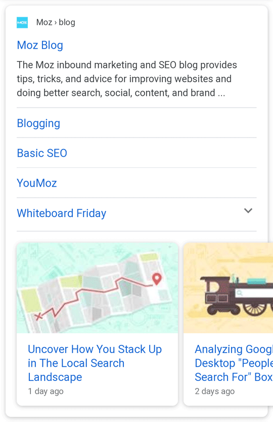 The wrapper makes the card a bit more apparent, but by leading with the brand, the new design makes it clearer that all of these elements — the organic result, site-links, and blog posts — are tied to a single source. Taking a brand-first approach may also be a part of Google's larger strategy to combat false information and help searchers attribute content to its source.