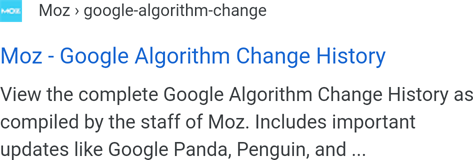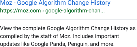 Unlike some previous ad redesigns, this change arrived with a redesign of organic results. Here's what an organic result for Moz's Algorithm History looked like on most mobile devices last week ...