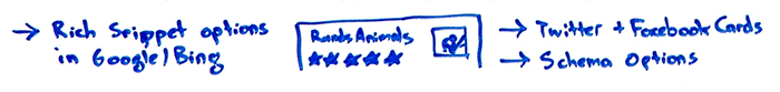 Are there content opportunities or image search opportunities? Do I have rich snippet opportunities? Like maybe, this is probably not the case, but I could have user review stars for my Rand's Animals website. I don't know if people particularly love this lemur GIF versus that lemur GIF. But those can be set up on your site, and you can see the description of how to do that on Google and Bing. They both have resources for that. The same is true for Twitter and Facebook, who offer cards so that you show up correctly in there. If you're using OpenGraph, I believe that also will correctly work on LinkedIn and other services like that. So those are great options.