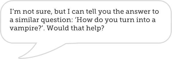 One interesting case is when Google decides to answer a slightly different question. On desktop, if you search for "How to become a vampire?", you might see the following Featured Snippet: