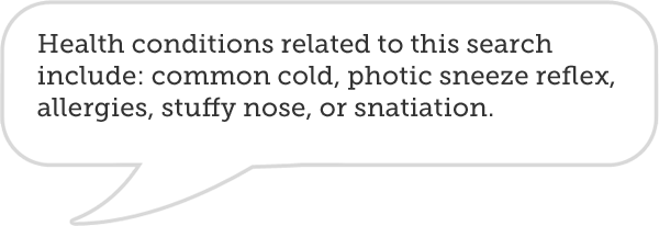A half-dozen or so health questions, from general questions to diseases, generated results like the following. This one is for the question "Why do we sneeze?":