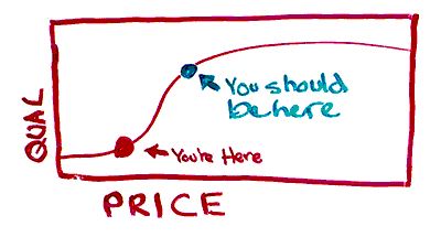If we have a graph of quality of services that you offer and the price that you sell at, most agencies think that they're offering great quality at a little price, but the reality is you're probably down here. You're probably under-selling your services and, because of that, you can't offer the best that you can.