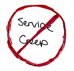 The last one is service creep. Oh, man, this one is hard. A customer comes up to you and they list off three things that you offer that they want, and then they say, "Oh, yeah, we need social media management." Somebody else comes up to you, three things you want to offer, and they say, "Oh yeah, we need you to write content," and that's not something you do. You've just got to not do that. You've got to learn to shave off services that you can't offer. Instead, turn them over to people who can do them and do them very well.