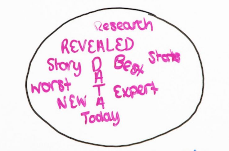 You can kind of see some core words shining through. So we've got research, best, stats, experts, that kind of thing. Now the top five words that were most commonly used across all sectors within the headlines were: best, worst, data, new, and revealed. Now "data" is really interesting, because if we go back to our A/B testing, we know that that's a strong word and that that will get you more opens with your subject lines.