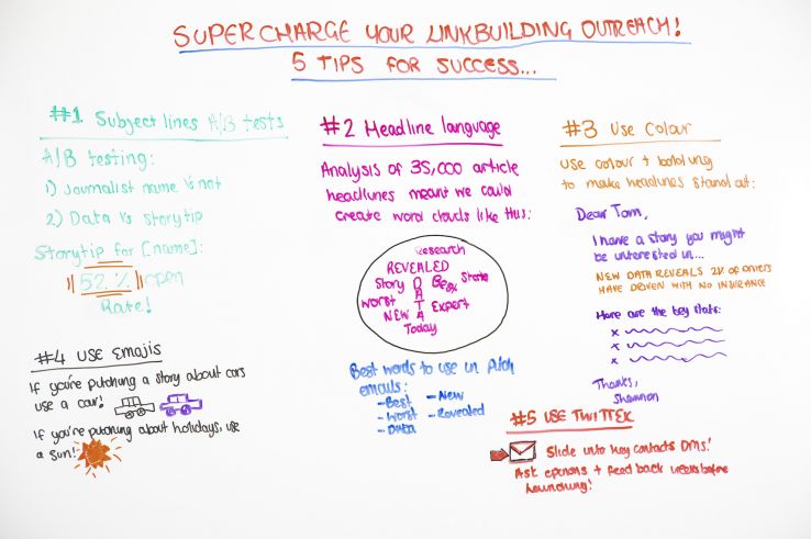But I only had half an hour to be able to share my insights and thoughts. As a next step from that presentation, I need to equip you guys with everything in order to be able to go out and actually speak to these journalists. So for my Whiteboard Friday today, I'm going to be sharing my five tips for success for supercharging your outreach, specifically evolved around email outreach alone.