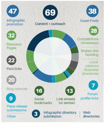 When we compare with responses from the 2013 survey, there is a clear shift towards content-led initiatives and a reduction in some tactics for example close to 50% said in 2013 that guest blogging was their staple tactic, in 2014 fewer than 15% listed it as one of their staple activities.