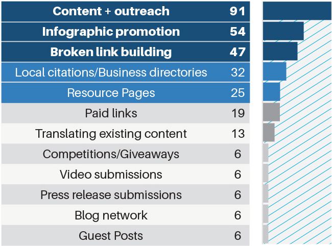 - Reclassification of the term "link building:" Many companies have shifted budget that they would previously classified as link building budget into content projects that more than likely still have an impact on link building efforts.