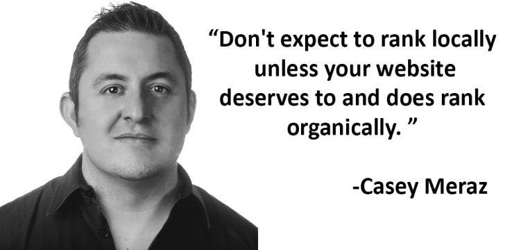 Although I've been seeing more variation than normal, it still rings true that companies who rank high in organic, non-local search results will also rank high in local search results. Your organic optimization should be in order, both from a ranking perspective and a user experience perspective. Don't treat these as separate, isolated channels.