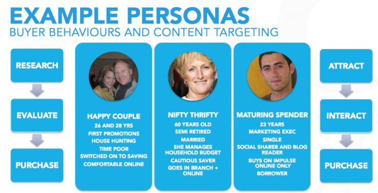 Take the "Maturing Spender" for example. In this fictional example for a banking brand we can see he not only has very different content needs but is actually "activated" by a different approach to the buying cycle too.