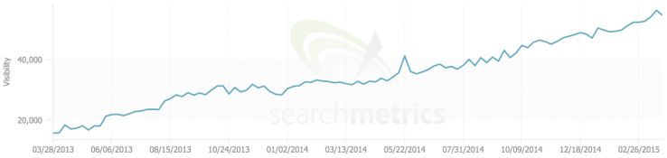 The Searchmetrics visibility chart below is just one example of a brand in the finance space seeing digital growth year-over-year as a direct result of this phenomenon. They've even seen some head terms drop backwards by a couple of places while still seeing this overall.