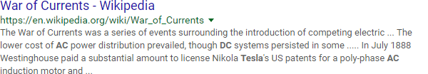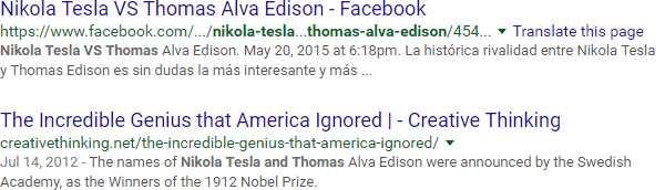 You've settled on using "Tesla vs. Edison" in your title, so let's do a quick check on content with that exact-match phrase:
