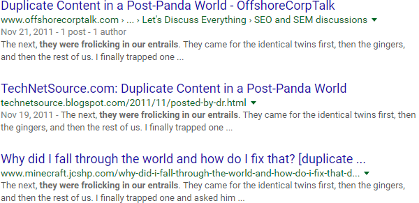 A site like Amazon has massive potential for internal duplicate content. By using the "site:" operator with exact match phrases, you can start to pin down near-duplicates: