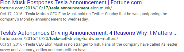 Google has decided that Tesla Motors is the dominant intent for this phrase, which doesn't help you very much for your current project.