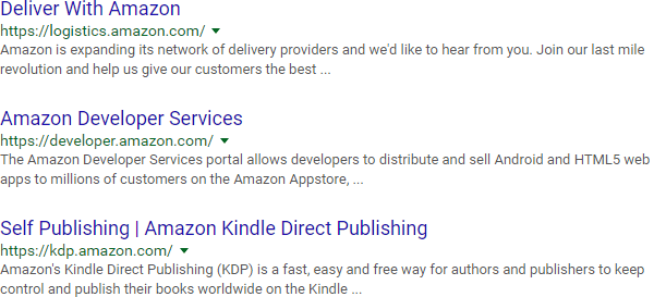 site:amazon.com -inurl:www -inurl:logistics -inurl:developer -inurl:kdp