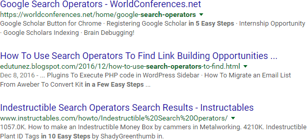 In these rare cases, you can use the "intext:" operator. This forces Google to find the text in the body of the document. Now, all of the top results clearly have an exact match in the content itself: