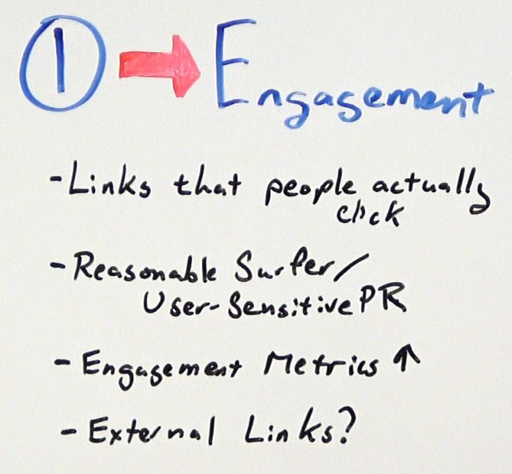 No. So you want to go after engagement. There are some technical Google reasons for this. Google has several patents that we've discussed over the years — reasonable surfer. There's a patent called User Sensitive PageRank. Through these patents, Google describes how they want to count links that people actually click.