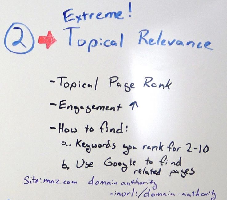 Number two tip, extreme topical relevance. Now people say, yes, you should link to topically relevant pages. I like link to extremely topically relevant pages.