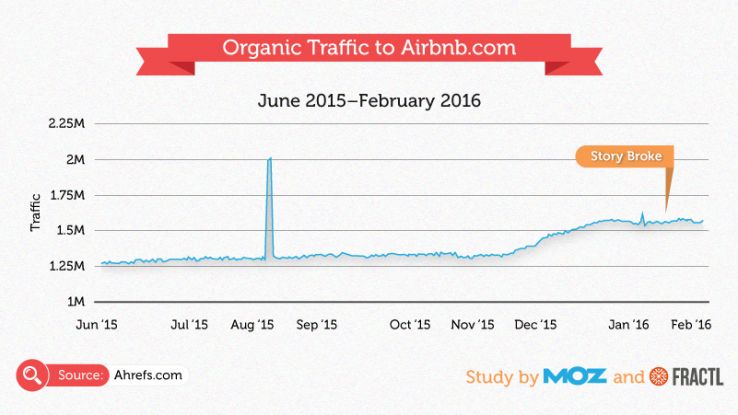 Airbnb’s site only saw a 2% increase in organic traffic, despite an 83% increase in press mentions.