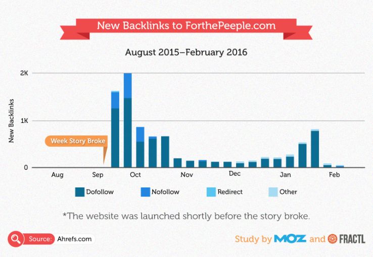 Turingpharma.com also saw a significant increase in backlinks after the story broke. Within a month after the story broke, the site had a 382% increase in new backlinks.