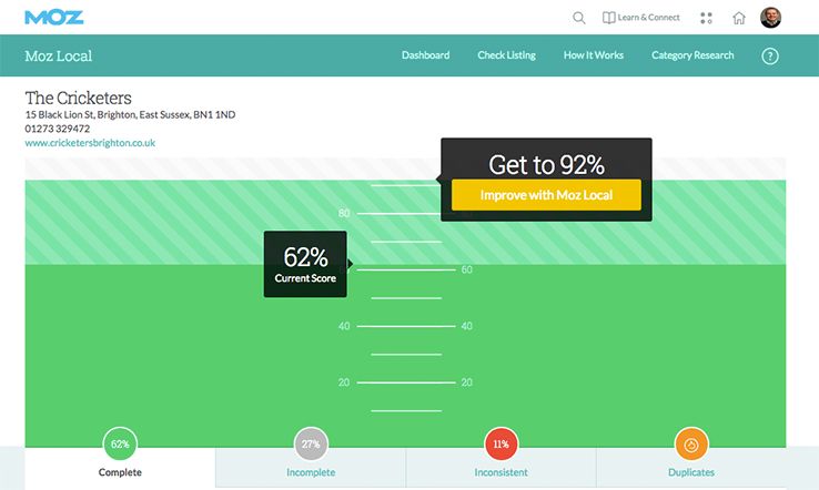 The cost per listing is £84/year, which includes distribution to the sites mentioned above with unlimited updates throughout the year, monitoring of your progress over time, geographically- focused reporting, and the ability to find and close duplicate listings right from your Moz Local dashboard--all the great upgrades that my colleague Noam Chitayat blogged about here.