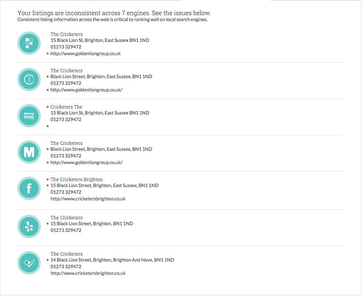 The concept is the same as the US version of Moz Local: show you how accurately and completely your business is listed on the most important local search platforms and directories, and optimize and perfect as many of those business listings as we can on your behalf.