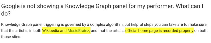I know we've look at musicians who have already reached a threshold of popularity. They are likely to have a Knowledge Graph result already.