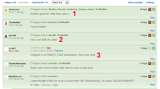 Maybe the Web 2.0 Awards submission will eventually hit the home page (though at this point it's looking pretty slim). Either way, the submission and its comments are a great example of "know your audience." Jane isn't your audience. Neither is Rand. Or me. Or SEOmoz members. Digg users are your audience, and you have to know what they like and don't like, what sense of humor they have, what pop culture references they'll get, and what industries they're tapped into. That's the tricky thing with social media marketing--you have to adapt your submissions, your tone, your pretty much everything in order to appeal with whichever demographic frequents that particular site. A good starting point is a post that Chris Winfield wrote at Search Engine Land about the art of commenting on social news sites, and it's definitely worth a look if you're aiming to participate more on social news sites and increase your profile visibility.