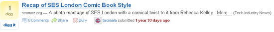 Diggers don't know or care who I am. This isn't Sphinn, people. Digg has a much broader category and user base. You can't just treat it like a bigger Sphinn and expect millions of users to know what a "mozzer" is. Likewise, submissions like this are pretty much useless: