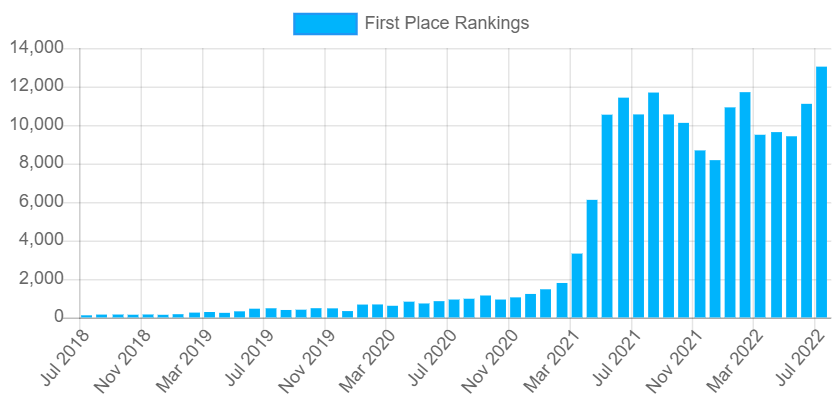 First place rankings have also increased, by 59.43% during 2022 and staggeringly, by 627.58% since starting work with a semantic approach: