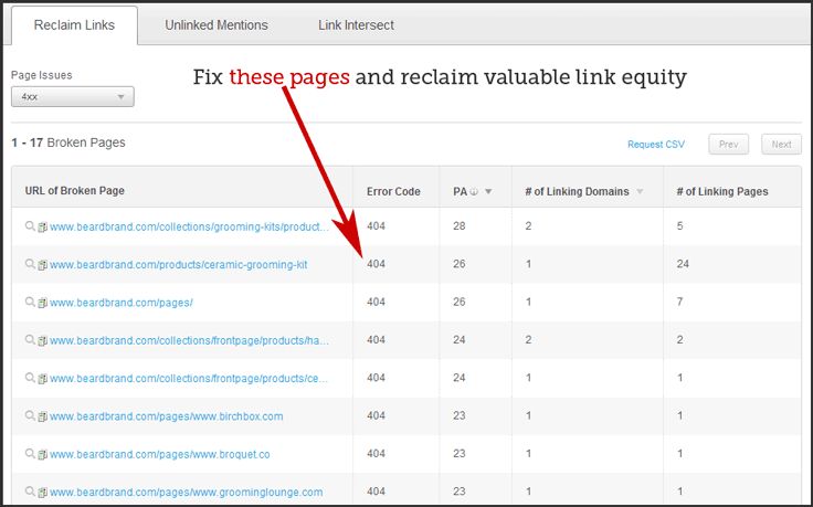 A filtered view of Top Pages that lets you easily export a ranked list of URLs to fix.