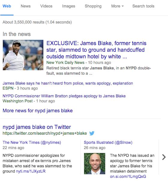 In addition to your profiles and pages, your social media updates themselves can be optimized with keywords. While most of the benefit will be seen on social search within each respective network, it never hurts to think about keyword optimization so your social updates can be found on Google search, like these tweets for current events:
