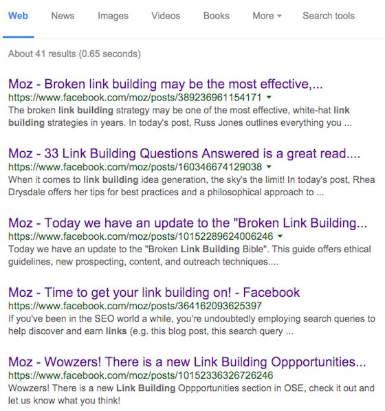 And notice where "link building" is highlighted in posts that appear in search results on Facebook when you search for that phrase: