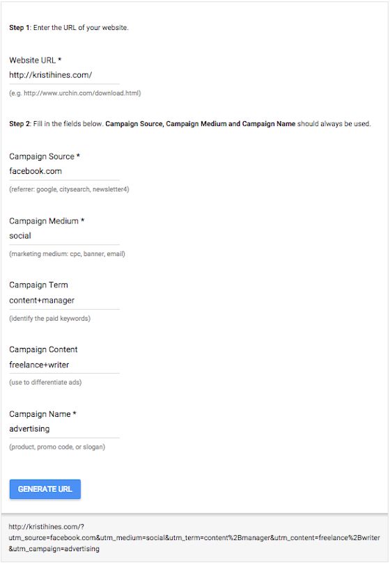 Do you like knowing exactly how people come to your website? If you are already using UTM parameters to track your links, you can utilize the optional UTM_term (used mostly by AdWords advertisers) to track your keyword usage. For example, if I create a Facebook ad for my business, I could use the following to note that the ad was targeted toward a specific audience, such as content managers, and the ad used the phrase "freelance writer."